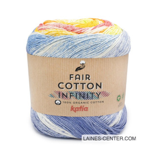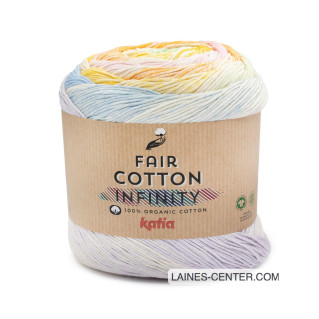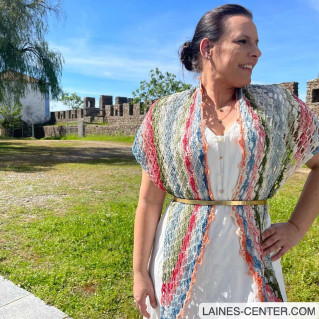 Il est réalisé avec une pelote de Fair Cotton Infinity de Katia (disponible en 7 couleurs). Le châle met en valeur le dégradé du fil et ses harmonies de couleurs audacieuses : de quoi rayonner tout l'été !